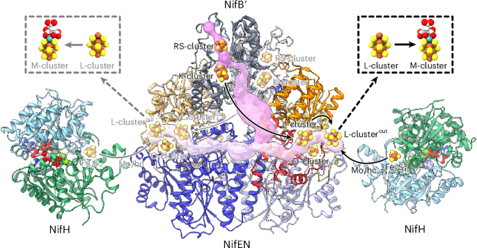 Structural insights into metallocluster trafficking in the nitrogenase assembly scaffold NifEN