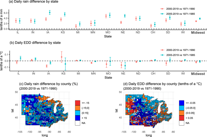 Hot dry spells and extreme rain increased corn and soybean prices in the United States Midwest